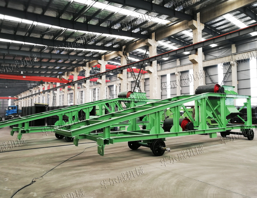 重型環(huán)保卸料車適用于不同規(guī)格、輸送不同種類物料的皮帶機。其工作原理是卸料車串聯(lián)在皮帶機上,根據不同物料的堆積角,使物料隨卸料車角度提升一定高度,然后通過三通向單側,兩側或中間卸料,物料的流向及流量通過各路的閘板閥(或翻板閥)控制。皮帶通過前后滾筒改向,使其重回前方。卸料車在皮帶機軌道上可以前后移動,實現多點卸料。